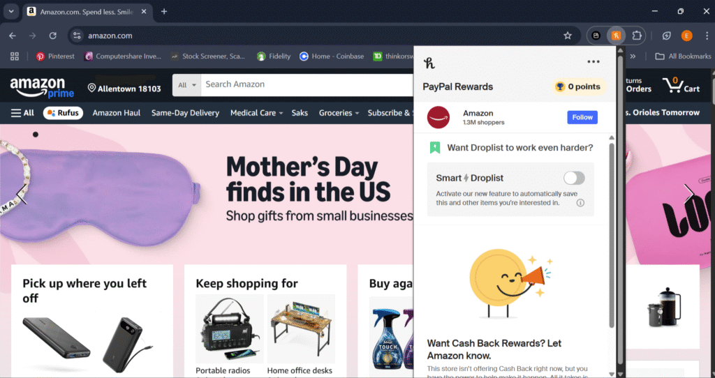Honey also offers a feature called Droplist, which lets you track price drops on items you’re eyeing. When the price drops, you get notified. It’s like price stalking, minus the restraining order.